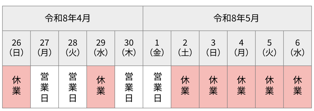 誠に勝手ながら、下記の日程を休業とさせていただきます。